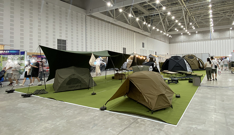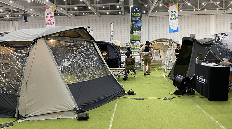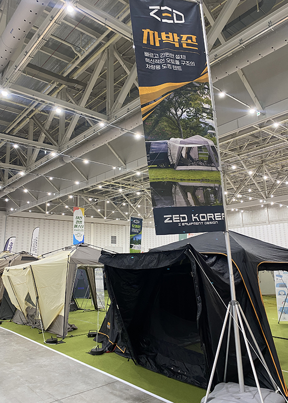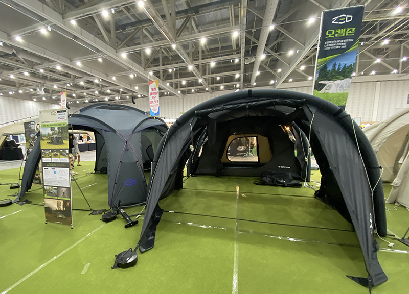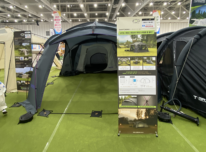 특히 텐트의 종류를 다양하게 전시해 두었던 제드는 차박용과 오토캠핑용 텐트를 나누어서 피칭해 두었습니다. 거의 대부분이 거실형 텐트로 이루어져 있었어서 뭔가 다양한 종류라기보단 다양한 사이즈를 경험해볼 수 있었습니다.