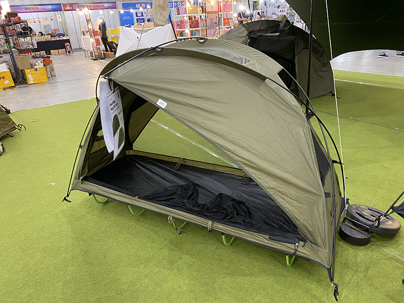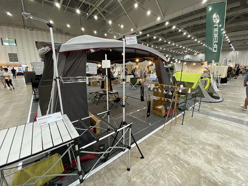 제드 다음으로 많은 제품이 전시되어 있었던 곳은 하이그라운즈 부스였습니다. 이곳에는 타프, 돔 텐트, 그리고 폴대 등의 제품들을 만나 볼 수 있었습니다. 여기서 에입 투 캠퍼 폴대를 만나게 되었는데, 생각보다 튼튼하고 괜찮은 슬라이드 폴대라는 생각이 들었습니다. 처음 슬라이드 폴대를 알게된 것이 어반사이드 슬라이드 폴대였어서, 슬라이드 폴대는 비싸다는 편견이 있었는데 생각보다 저렴한 제품들도 많다는 것을 알게됐던 계기가 되었습니다.
